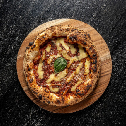 Salsa amatriciana, mozzarella, guanciale, Pecorino Romano D.O.P.
