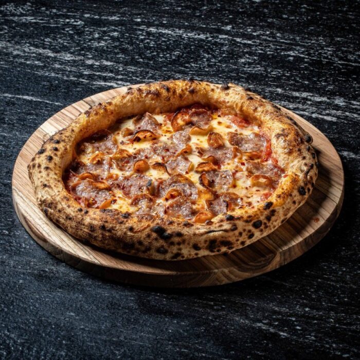 Salsa pomodoro, mozzarella, salame italiano, ají
